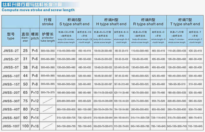 JWSS絲桿升降行程與絲桿長(zhǎng)度計(jì)算